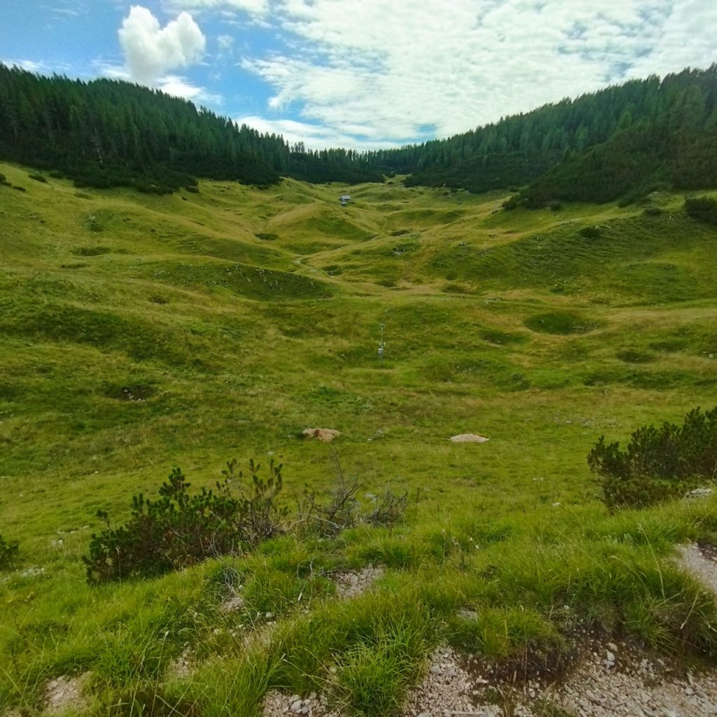 Salendo dalla Val Agnella si incontra la stazione metereologica di Capoluzzo, una dolina sull’altopiano di Asiago.